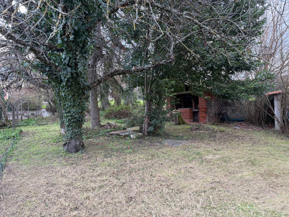 A l'arrière, la maison dispose d'un joli jardin arboré, cloturé et plat.