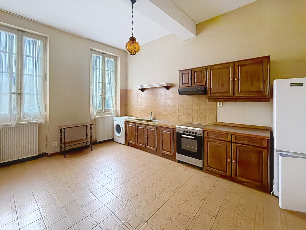 Elle est composée en rez de chaussée d'un séjour avec cheminée, une grande cuisine indépendante, une chambre et sa salle d'eau, une buanderie et toilettes.