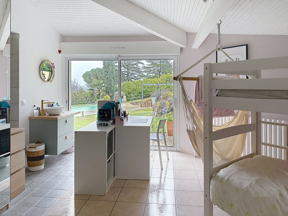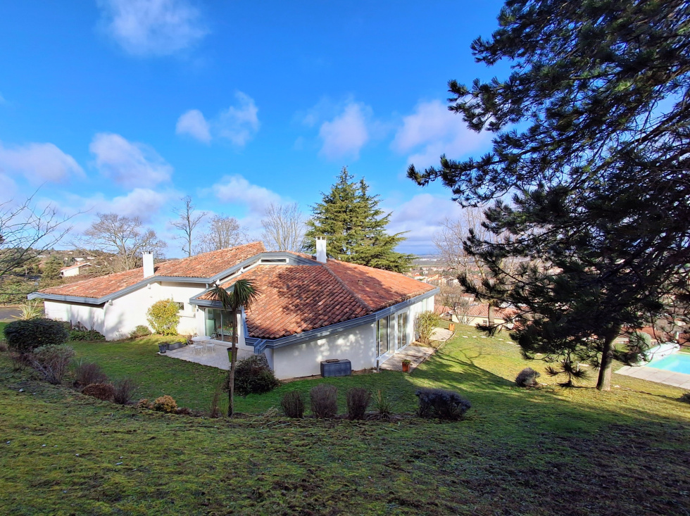 Nichée sur les hauteurs de Castanet-Tolosan, dans un quartier résidentiel préservé et calme, belle villa d'architecte de type 6, alliant élégance et confort sur un terrain arboré de près de 4000 m².Un panorama à couper le souffle sur la plaine de Castanet s'offre à vous depuis cette maison de 234 m², baignée de lumière grâce à ses larges baies vitrées. L'espace de vie, ouvert sur les terrasses, invite à la détente et à la contemplation.L'intérieur est soigné et fonctionnel et se compose d'un séjour lumineux de plus de 50 m², d'une cuisine équipée avec arrière-cuisine et buanderie, de 4 chambres spacieuses, dont une suite parentale,de 2 salles de bains et d'un bureau indépendant. Elle possède d'un garage de plus de 60 m². Vous succomberez sans nul doute au charme de ses terrasses ensoleillées, de son parc aux essences remarquables, de son espace piscine dominant une vue panoramique exceptionnelle.Prestations haut de gamme, finitions irréprochables et état impeccable : cette villa est une invitation à vivre l'exception au quotidien. Honoraires à la charge du vendeur. Les informations sur les risques auxquels ce bien est exposé sont disponibles sur le site Géorisques : georisques.gouv.fr.